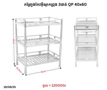រាវចានអ៊ីណុកជាប់ 3ជាន់ QP 40×60