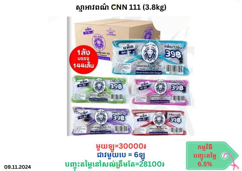 ស្មាអាវពណ៌ CNN 111 (3.8kg) LL December 22, 2025 Posted in 28100, CNN, ស្មាអាវ, ស្មាអាវពណ៌, ស្មាអាវពណ៌ CNN