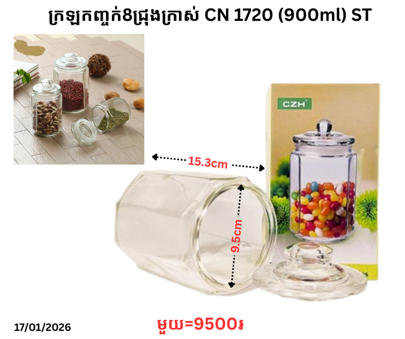 ក្រឡកញ្ចក់8ជ្រុងក្រាស់ CN 1720 (900ml) ST