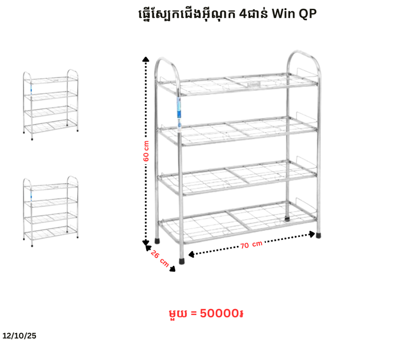 ធ្នើស្បែកជើងអ៊ីណុក 4ជាន់ Win QP January 5, 2026 Posted in 50000, QP, ធ្នើស្បែកជើង, ធ្នើស្បែកជើង QP, ធ្នើស្បែកជើងអ៊ីណុក Product Code : P0008580